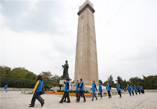 在参观完南京大屠杀遇难同胞纪念馆后,大家怀着无比崇敬的心情来到了雨花台烈士陵园。庄严肃穆的雨花台山冈,烈士纪念碑巍然耸立,“宁死不屈”的革命烈士塑像岿然屹立,用数万盆鲜花铺就的“信仰”两个大字格外醒目。
